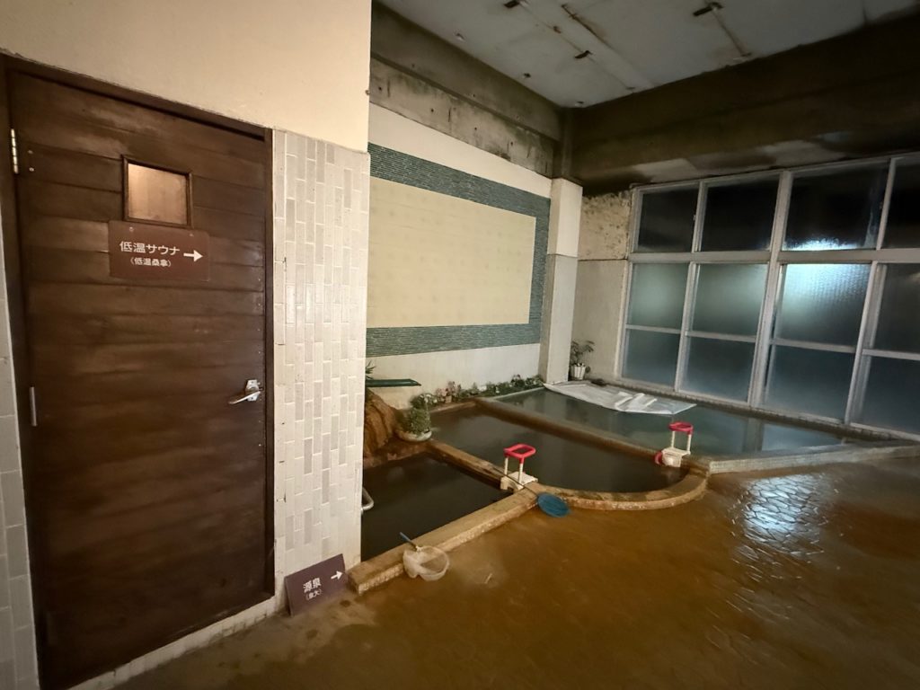 内風呂は3つあり、1番大きな浴槽が5人位の大きさで加温がされており、体感で40度くらいの温度です。