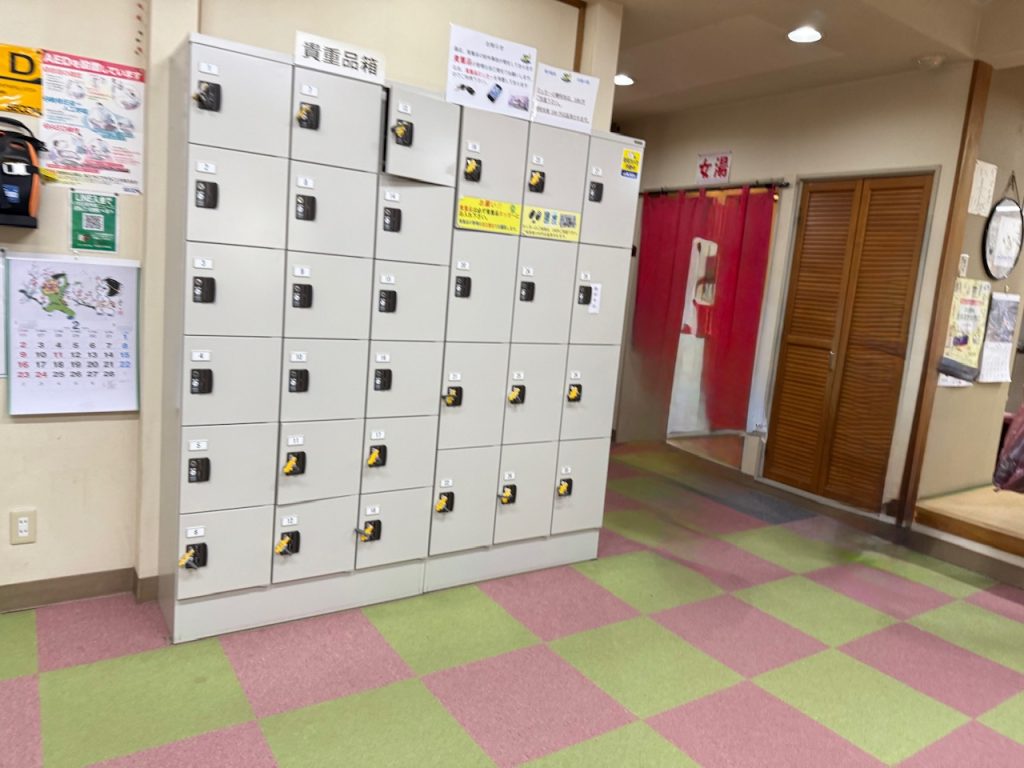 脱衣所の入口前に貴重品ロッカーがありました。