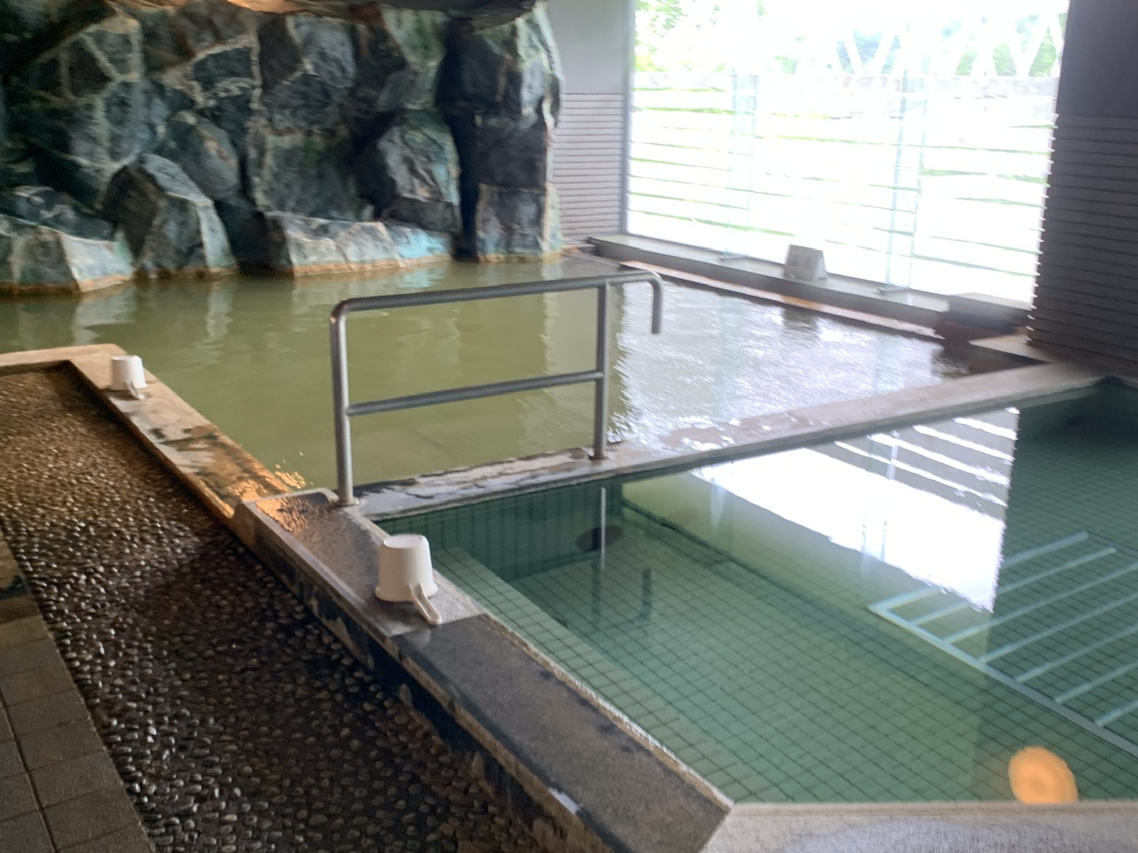 内風呂は岩がある茶褐色のお湯の浴槽と、温泉ではないと思われる浴槽と水風呂でした。