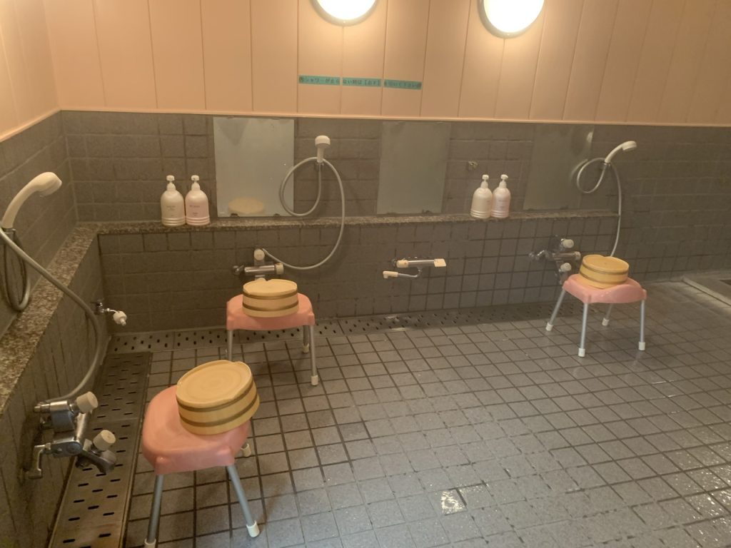 洗い場は4つあり、シャワーは手動で止めるタイプでした。