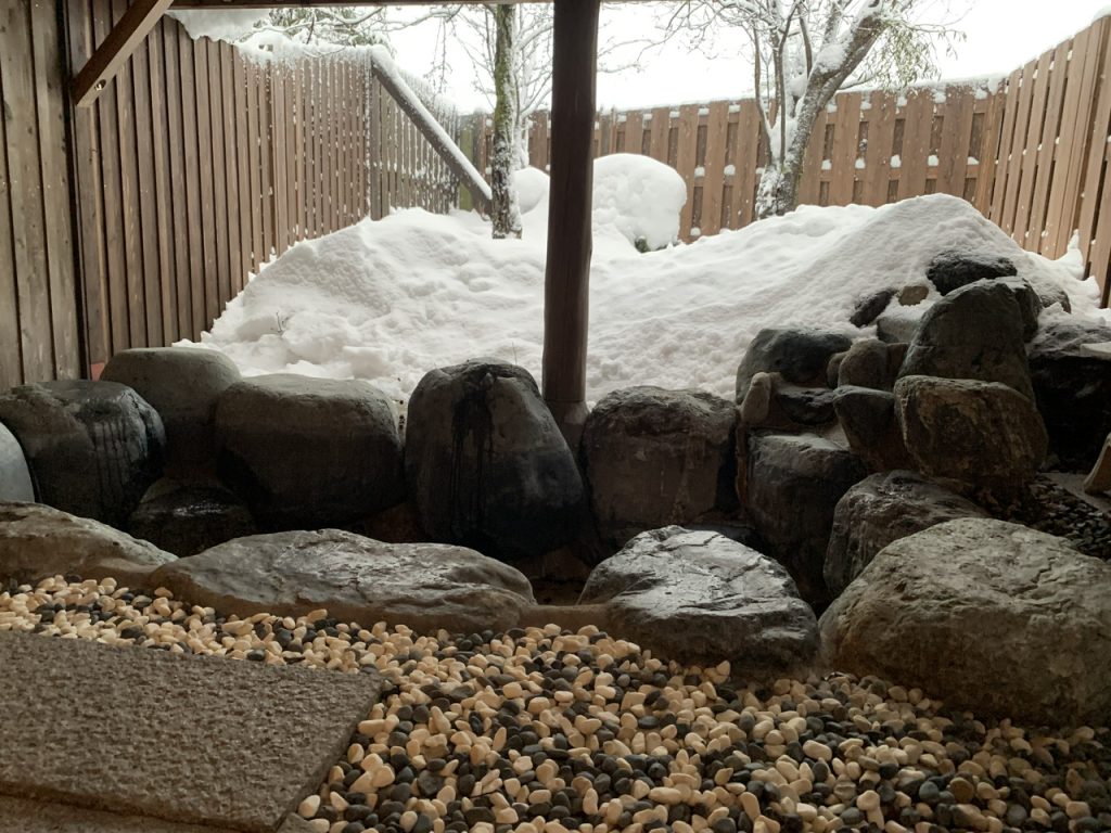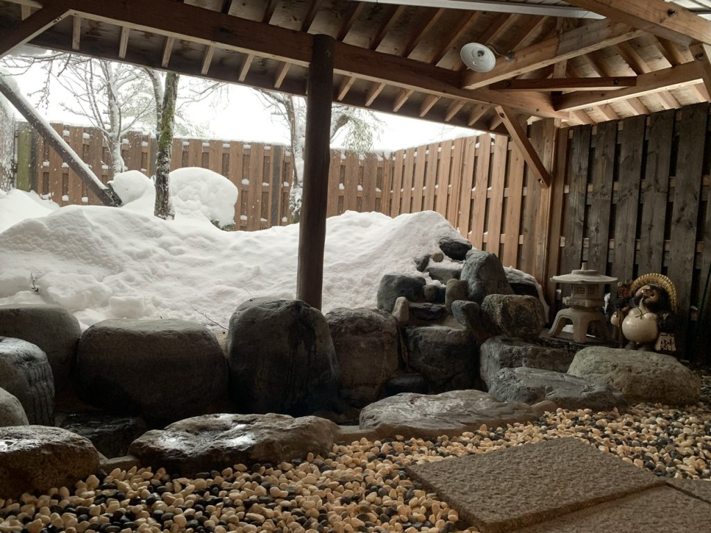 冬に訪問したので露天風呂は閉鎖されて入浴できませんでしたが、大きな岩に囲まれた雰囲気のよさそうな露天風呂でした。