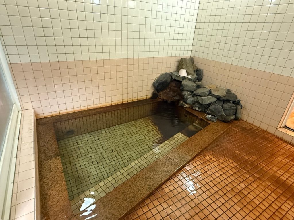 内風呂1つのみとなり、2人位の大きさで岩が積みあがっている所からお湯が掛け流されていました。