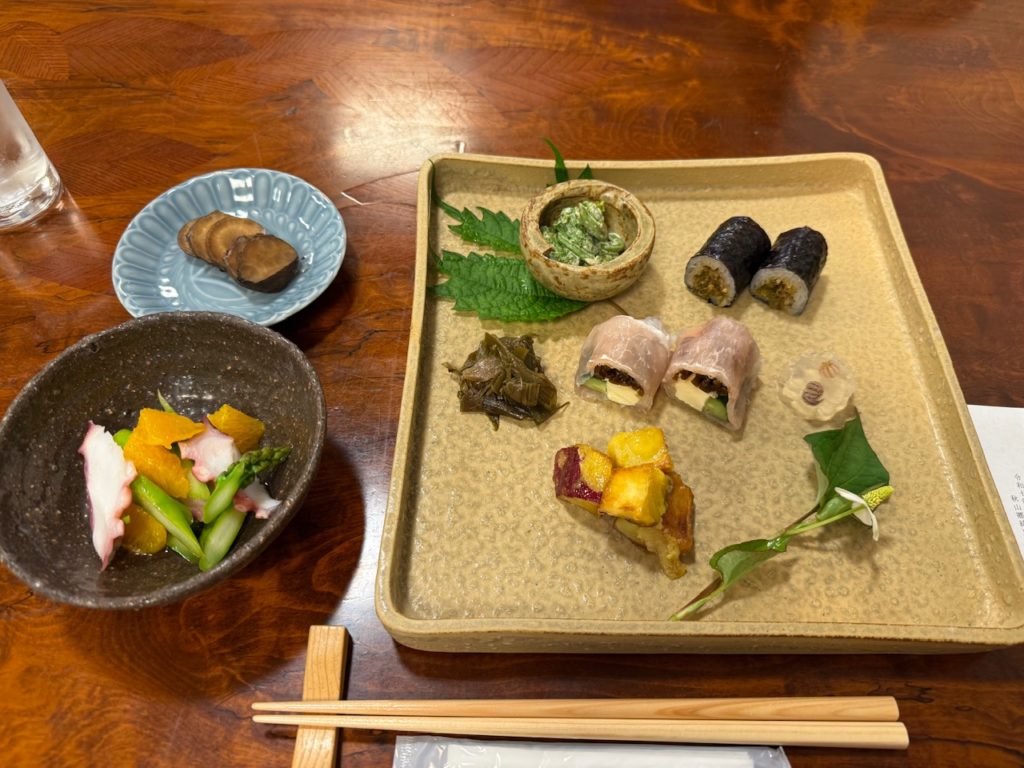 近くの山で採れた山菜を使った創作料理を頂くことができました。