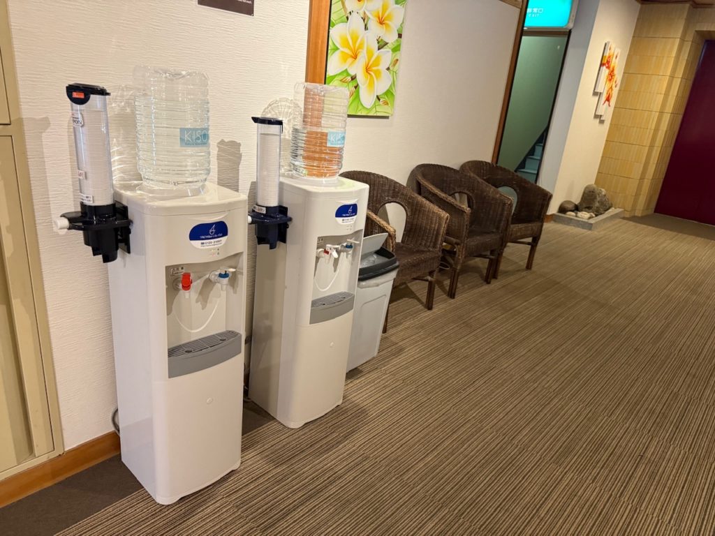 大浴場は地下にあり、エレベーターを降りると脱衣所の前にウォーターサーバーが設置されていました。
