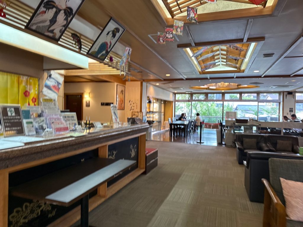 館内に入って行くとロビーが広くて食堂も窓が大きく解放感がありました。