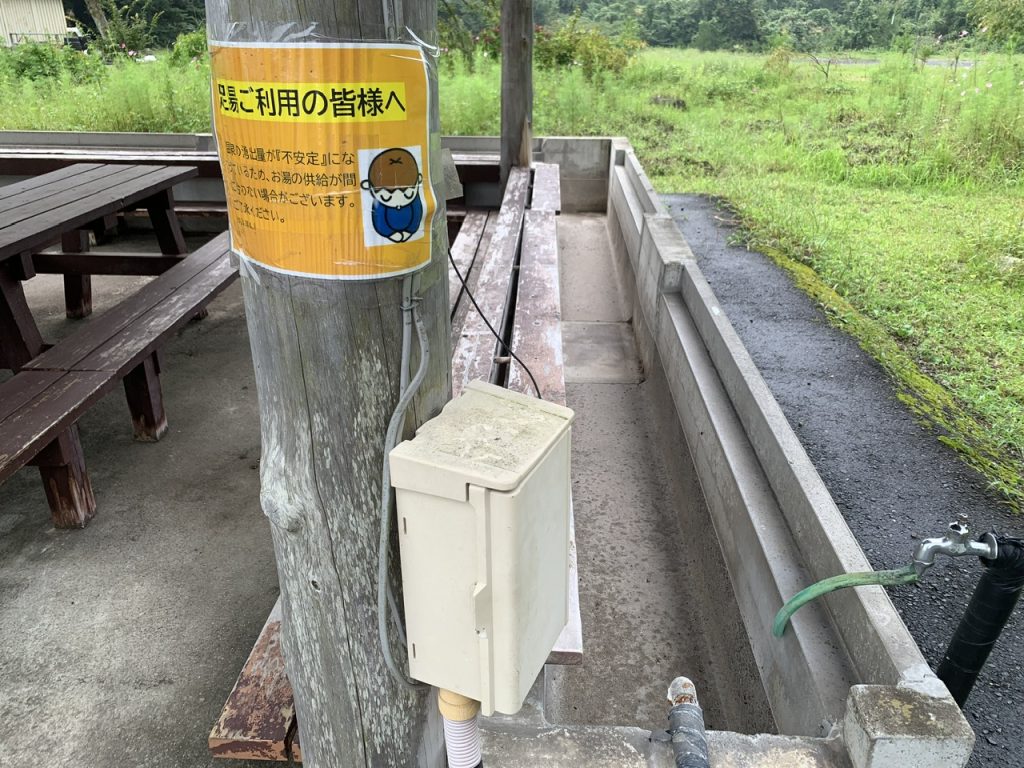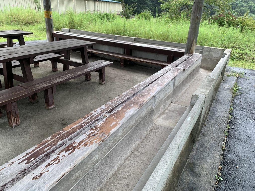 広い休憩できるスペースの周りに足湯の浴槽が囲われていましたが、お湯がありませんでした。