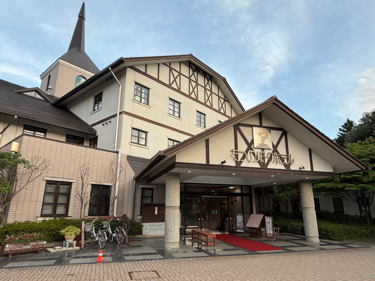 荒神山の林道に入って坂道を登っていき、山の頂上に着くと広い公園の敷地にホテルがありました。