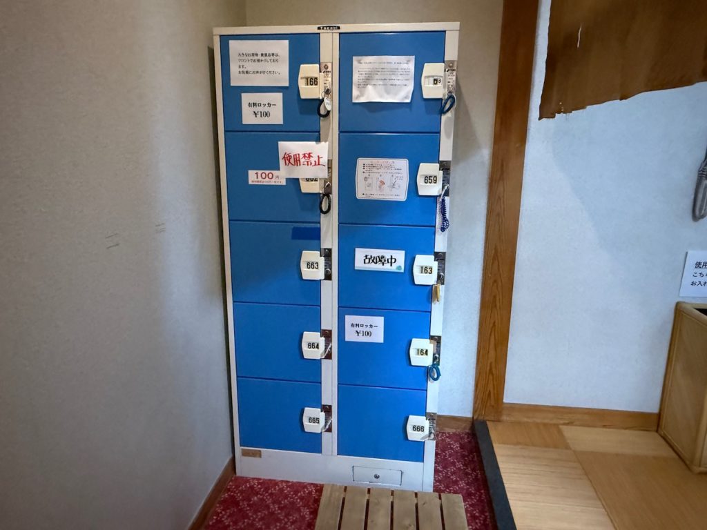 脱衣所に入ってすぐに100円の有料鍵付きロッカーがあり、脱衣所内はカゴでした。