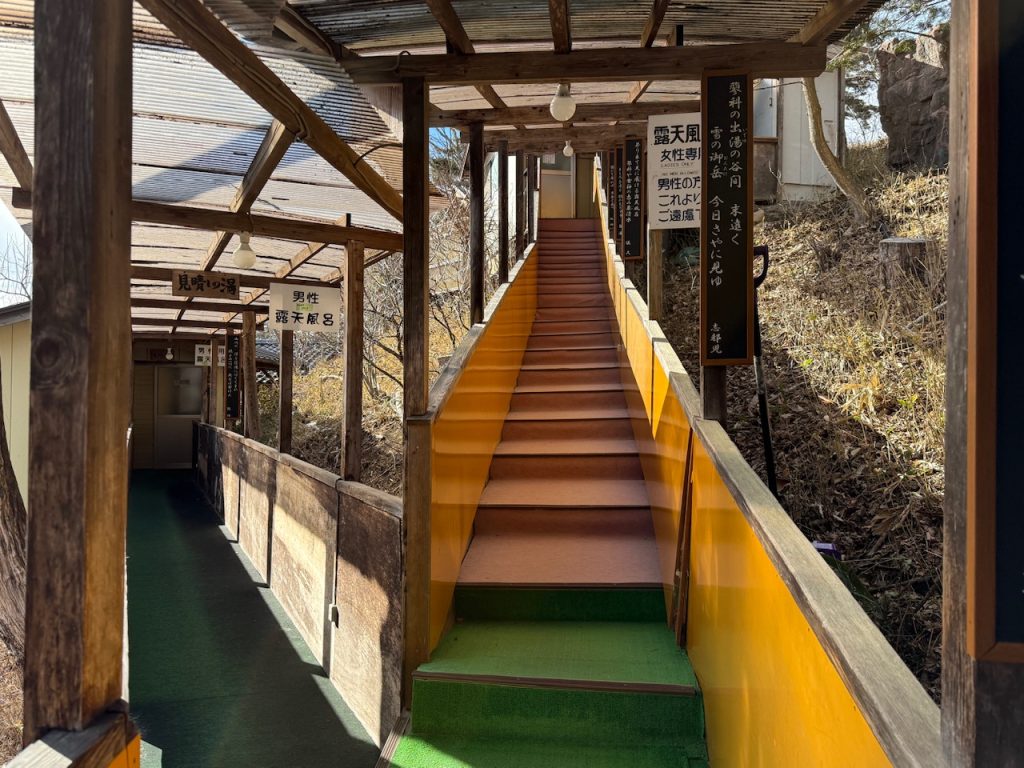 枝分かれした通路の階段を上っていくと、男性の露天風呂は「見晴らしの湯」でした。