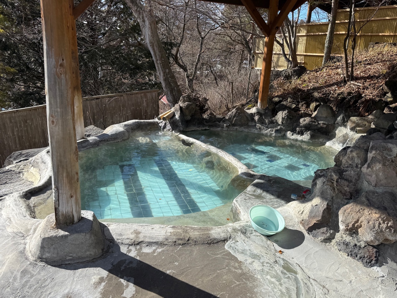 露天風呂は2つに浴槽が分かれており、3人と2人位の大きさでした。