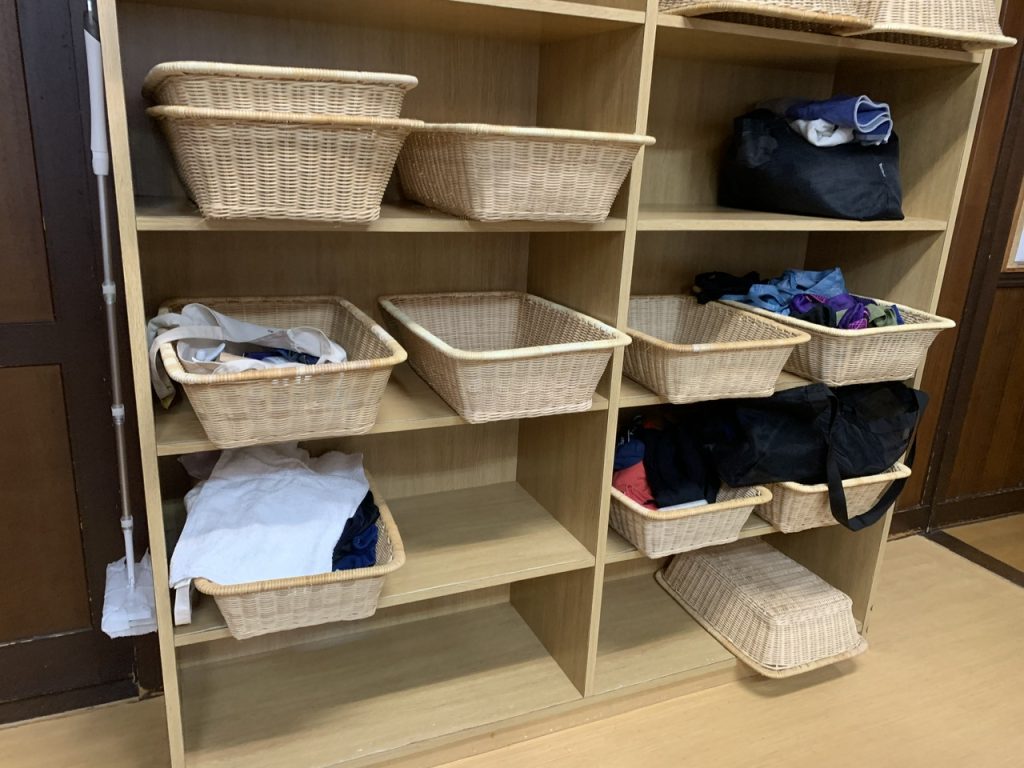 脱衣所はカゴでした。