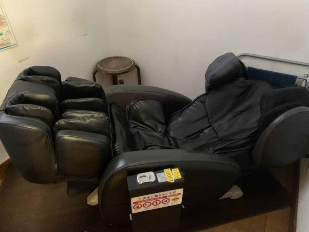 小さい個室にマッサージ機があり、静かに体をほぐして癒される事が出来そうです。