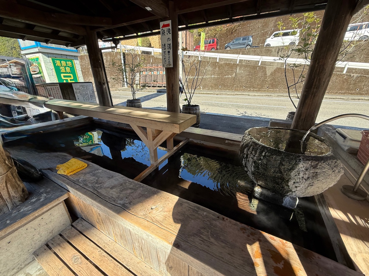 道の駅に近づいていくと、玄関口の前の車道側に足湯がありました。