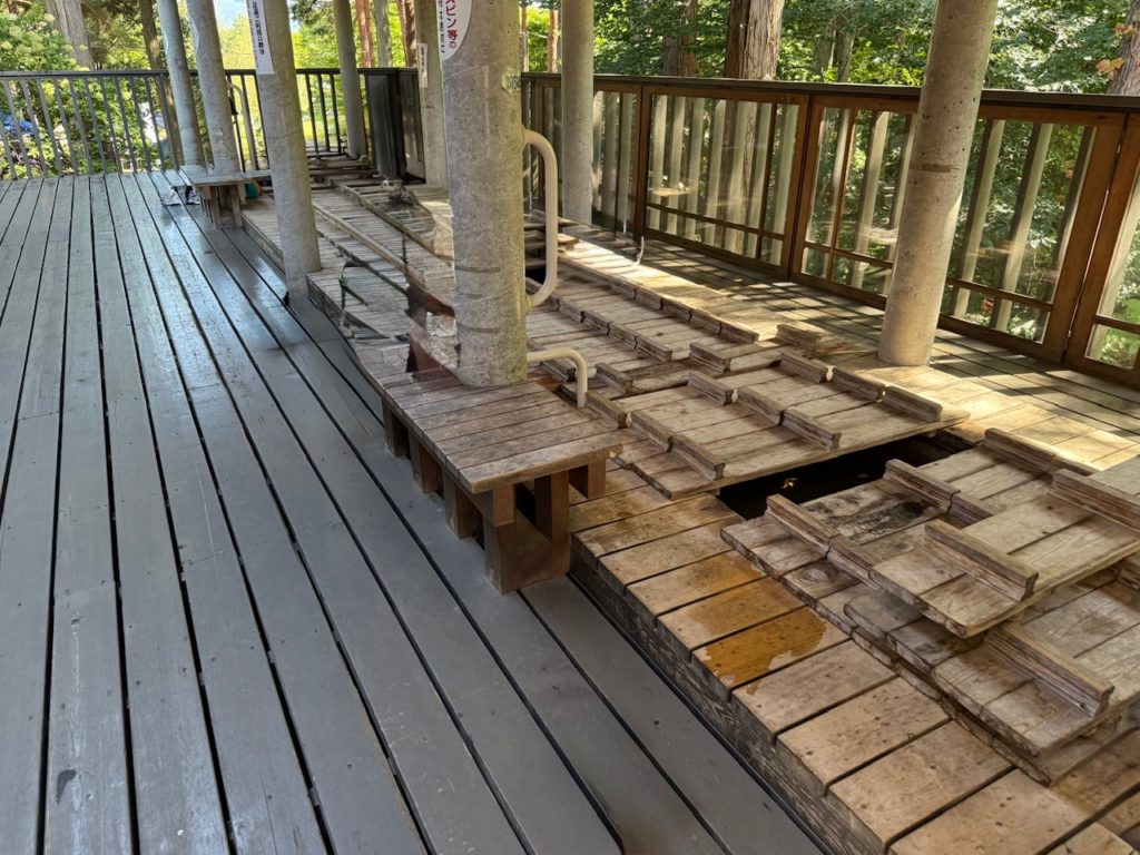 横に長い浴槽の上に木の蓋で温泉の湯が冷めないように蓋がされていました。