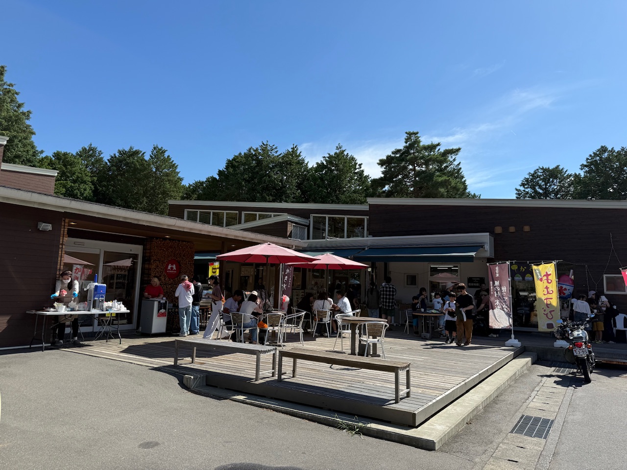 2018年7月にオープンした道の駅には地元産の旬の野菜が並ぶ直売所、パン屋さん、お洒落なガレットやジェラードを提供するカフェ「味工房」の裏に「大芝高原温泉」の源泉を利用した足湯があります。