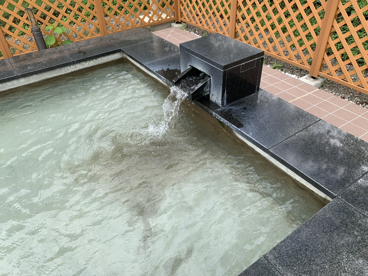 長方形の石の浴槽に源泉がかけ流されています。