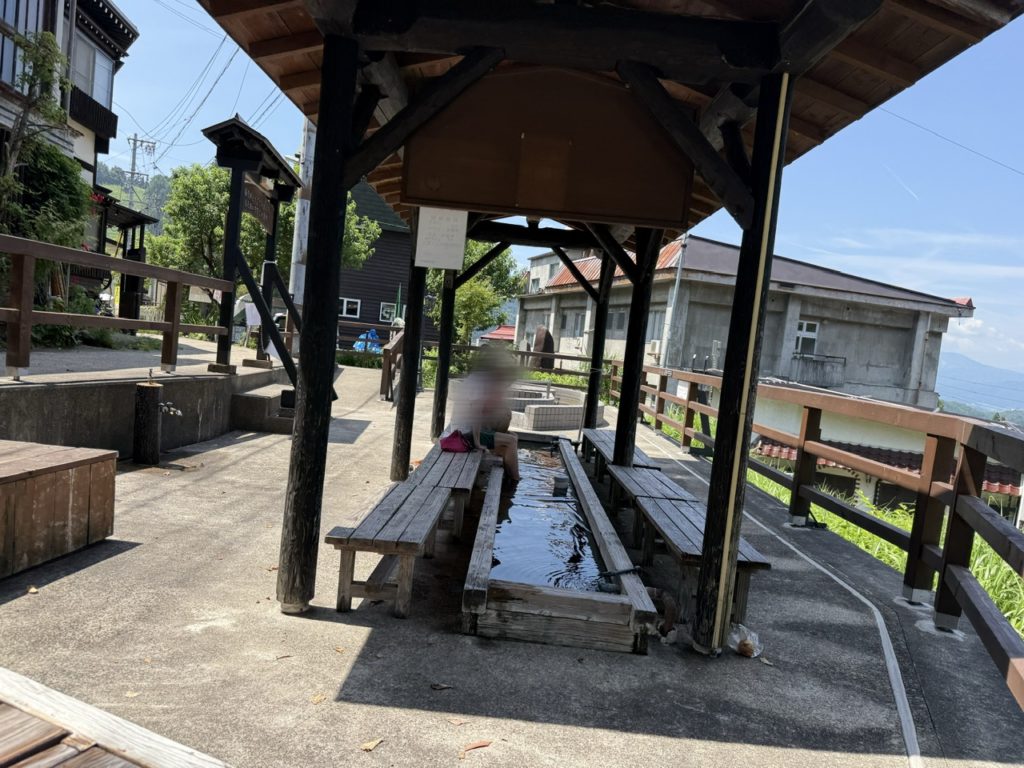 名所の「麻釜(おがま)」から路地を歩いて行くと足湯がありました。