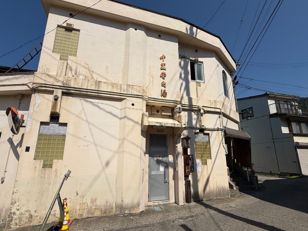 昭和を感じるレトロな2階建ての建物は、1階が女湯、2階が男湯と変わった作りになっています。
