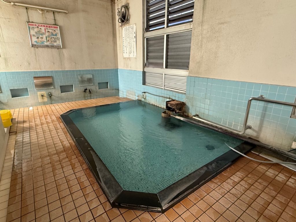 内風呂は正方形のタイルの浴槽が1つとなり、少し古さを感じる浴槽です。