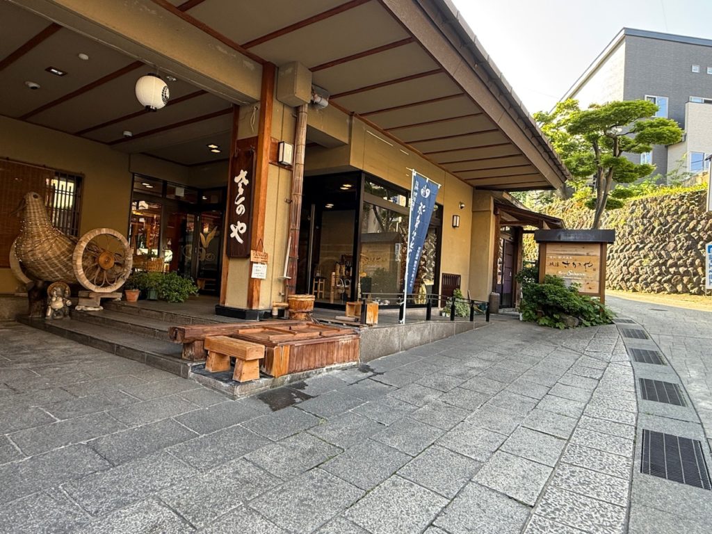 江戸時代には造り酒屋を営んでいた老舗旅館「旅館 さかや」は、宮大工による伝統の湯屋建築造りの大浴場が魅力の浴室には、あつ湯、ぬる湯、寝湯、露天風呂、サウナも併設され、玄関前には誰でも入る事ができる足湯があります。