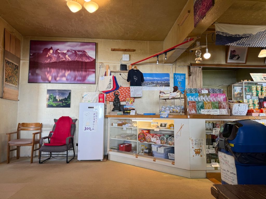 室内に入るとロビーでは食事の提供やカップラーメンなどが並んでいます。