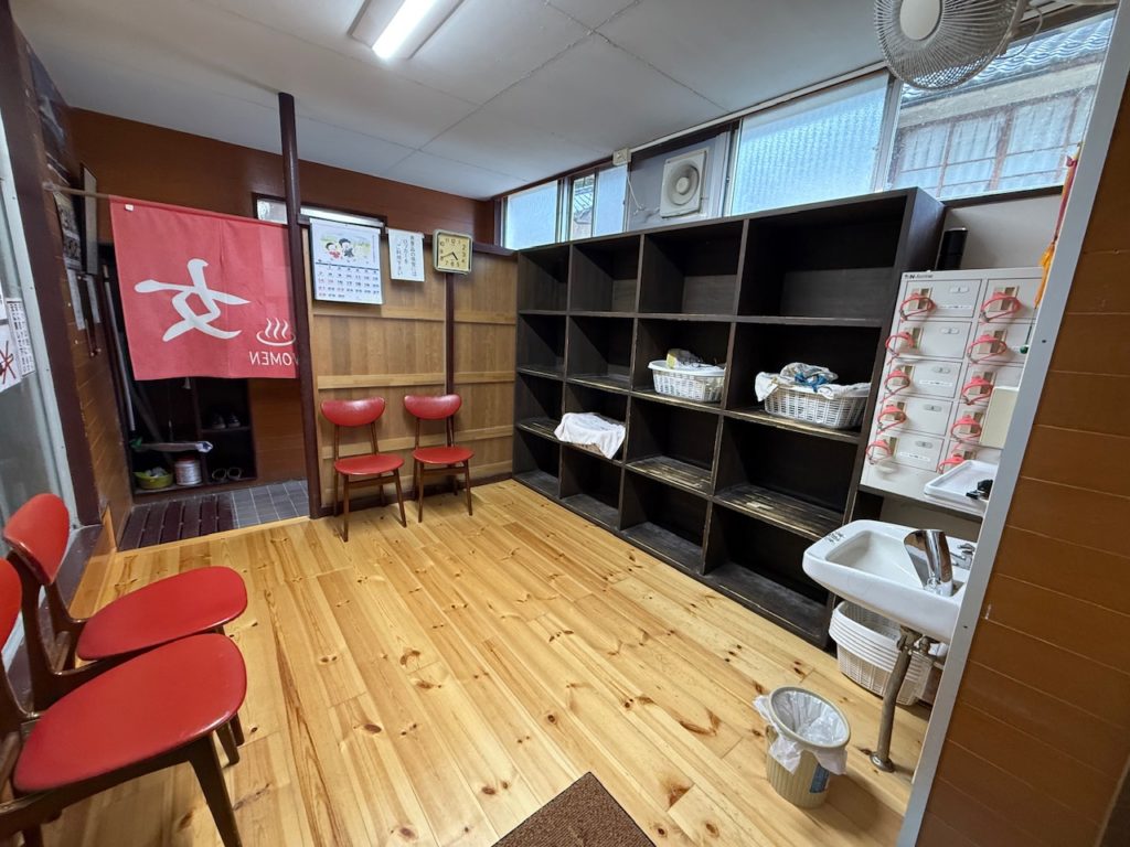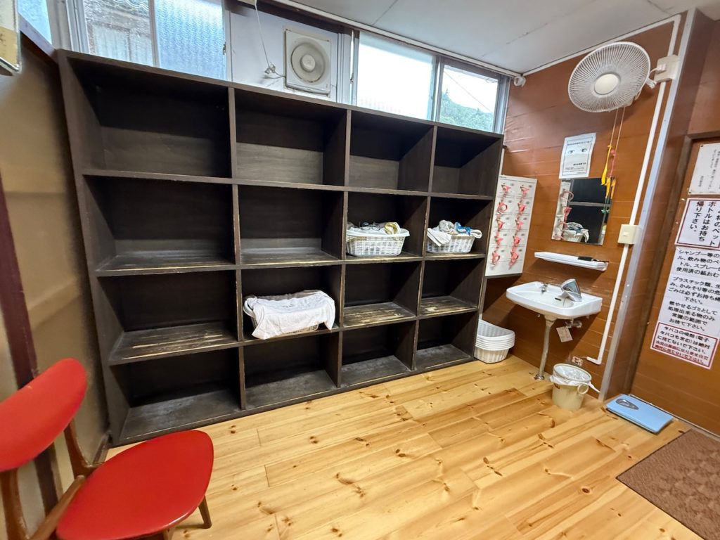 脱衣所はカゴと貴重品ロッカーがありました。