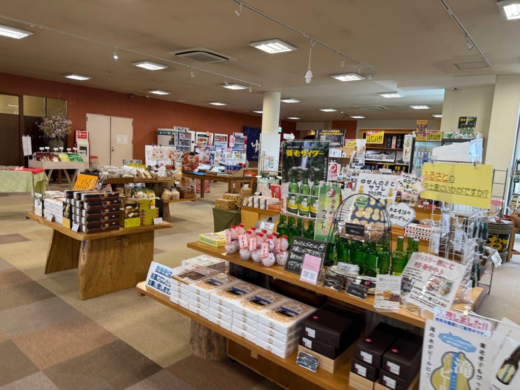 施設前の駐車場に停めて館内に入っていくとお土産など広い売り場がありました。