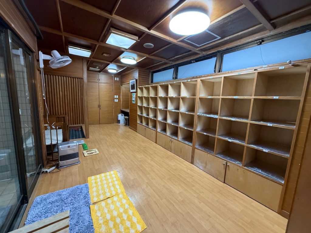 脱衣所は棚となり、脱衣所に入ってすぐに貴重品鍵付きロッカーがありました。