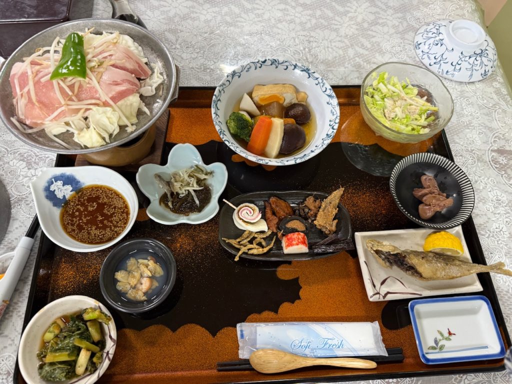嬬恋名産のキャベツと上州もち豚を特製ダレで味わう陶板焼きが並び、キャベツが甘くて柔らかくて美味しかったです。