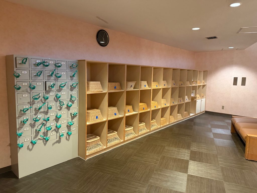 脱衣所はカゴとなり、貴重品の鍵付きロッカーがありました。