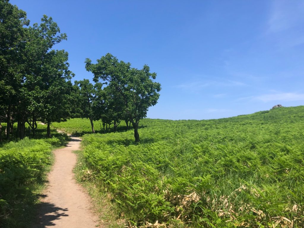 駐車場から車道を歩いて遊歩道に入って海の方面へ歩いていきます。