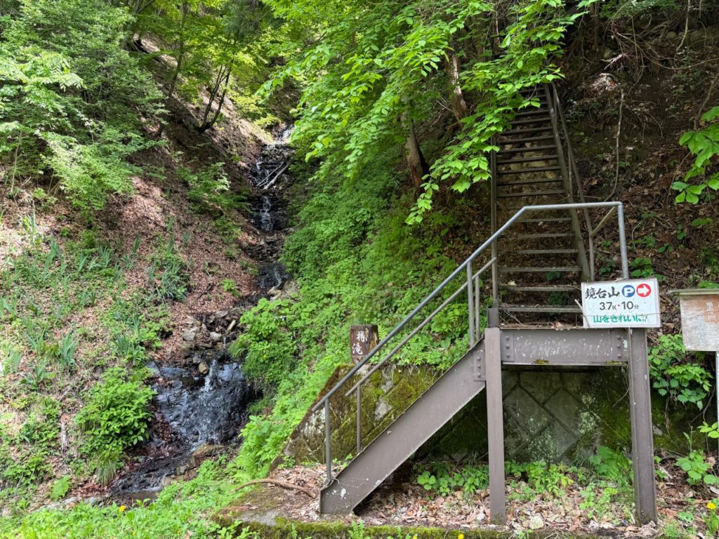 階段付近の車道が広く作られていたので、路肩に車を駐車しました。