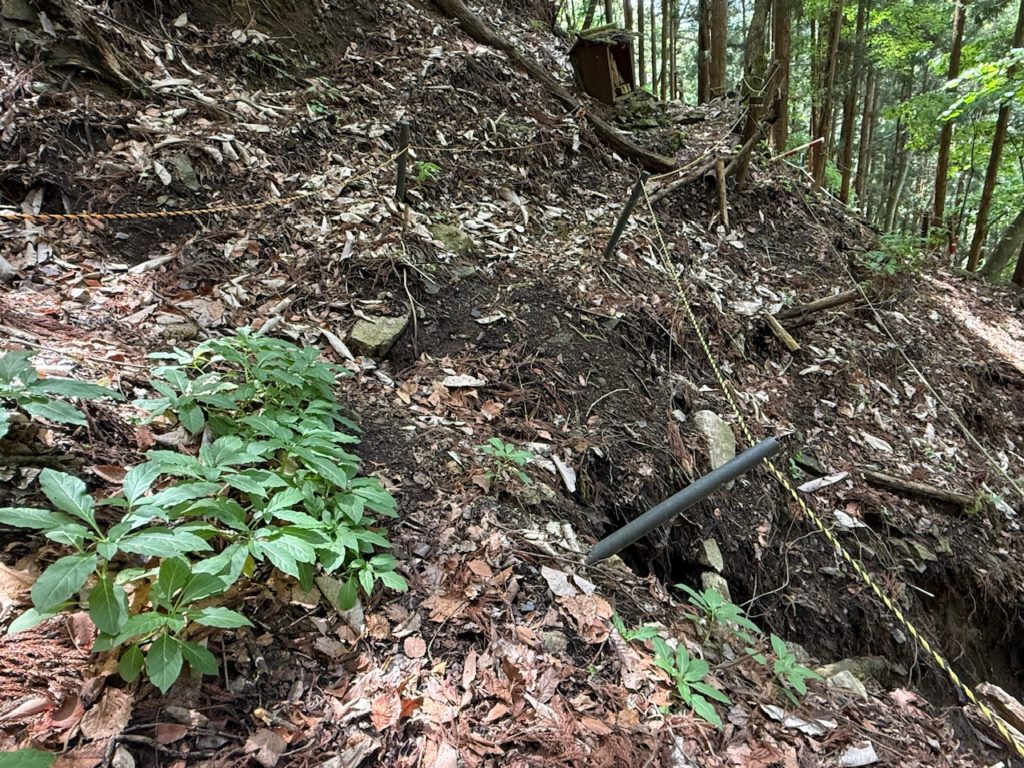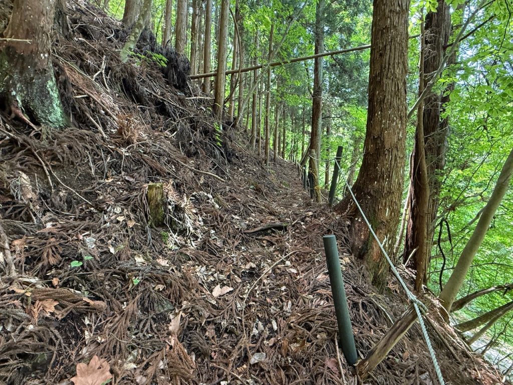 山の急斜面を登っていく箇所が出てきて、ロープなどで区切られていたので道だとは分かりましたが、整備はされていない登山道の雰囲気です。