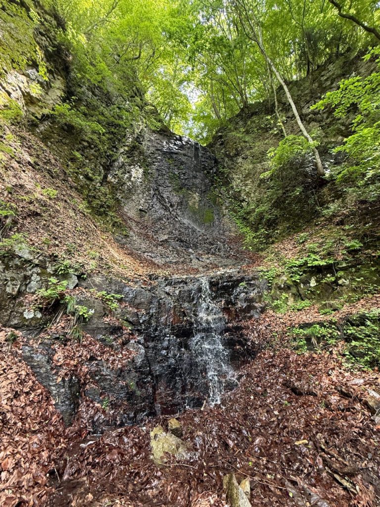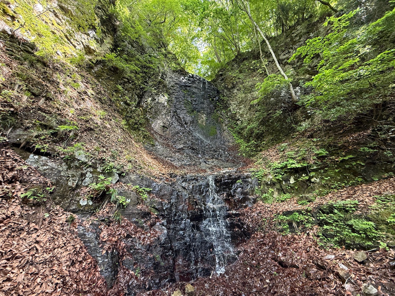 一か所、道が崩落している箇所がありましたが、慎重に足元を選んで進んでいけば、滝前に到着できます。
