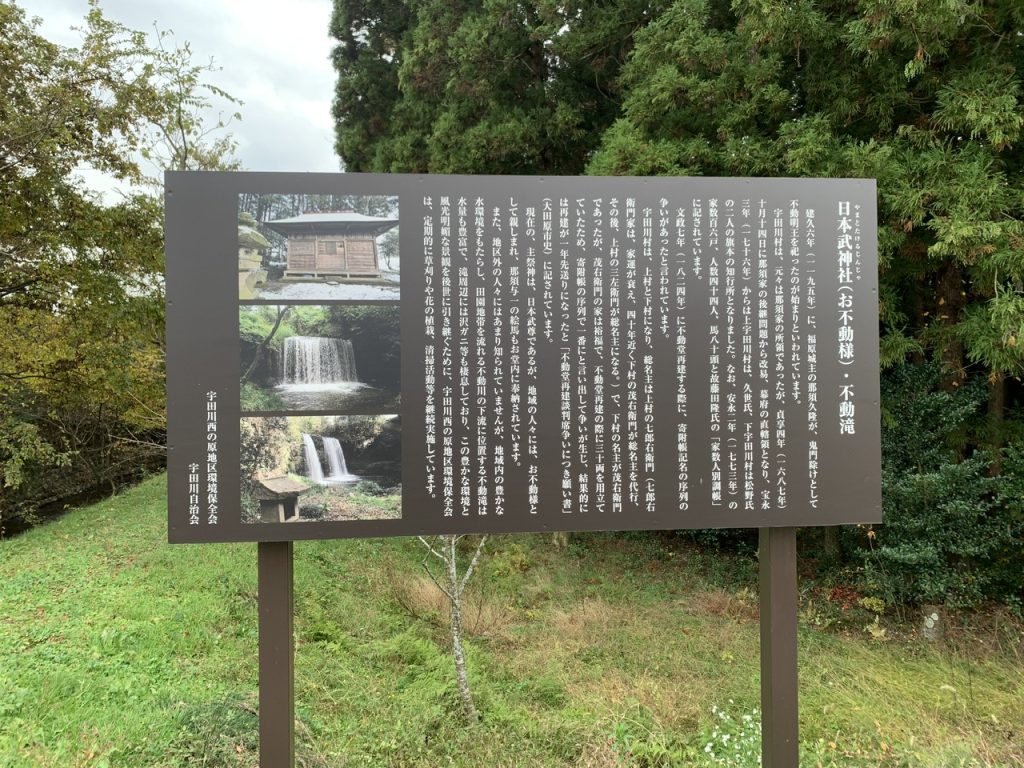 こちらは宇田川地区にある主祭神・日本武尊となる日本武神社(やまとたけるじんじゃ)の隣にある不動の滝です。