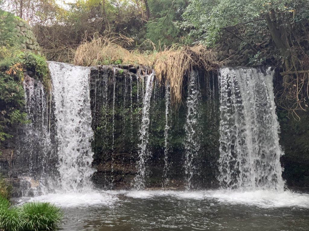 更に階段を降りて行くと滝がありました。