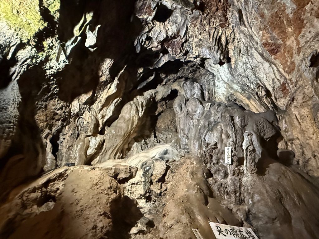 洞窟内は足元が滑りやすくなっていて天井が低い場所もありますので気を付けて歩いていきます。