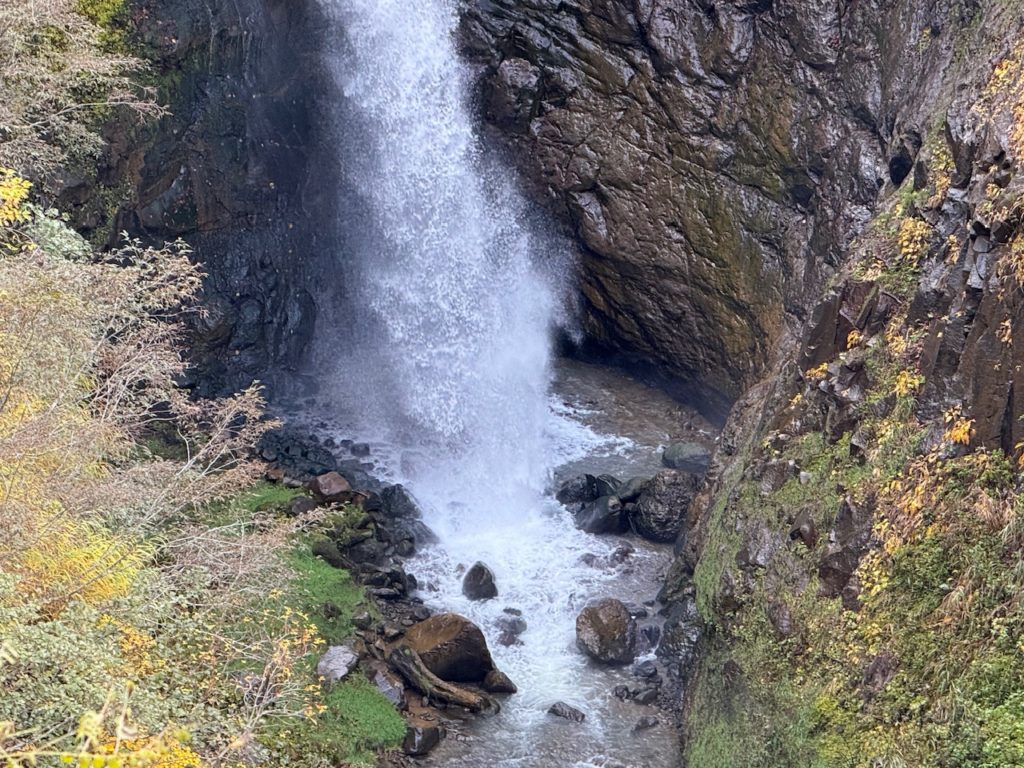 小屋までくると目の前に滝が見えてきました。