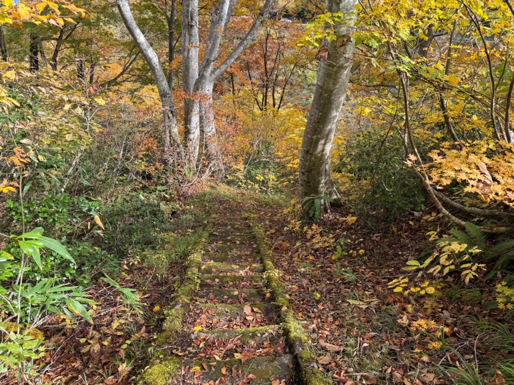 かなり昔に作られたと思われる苔に覆われた階段を下っていきました。