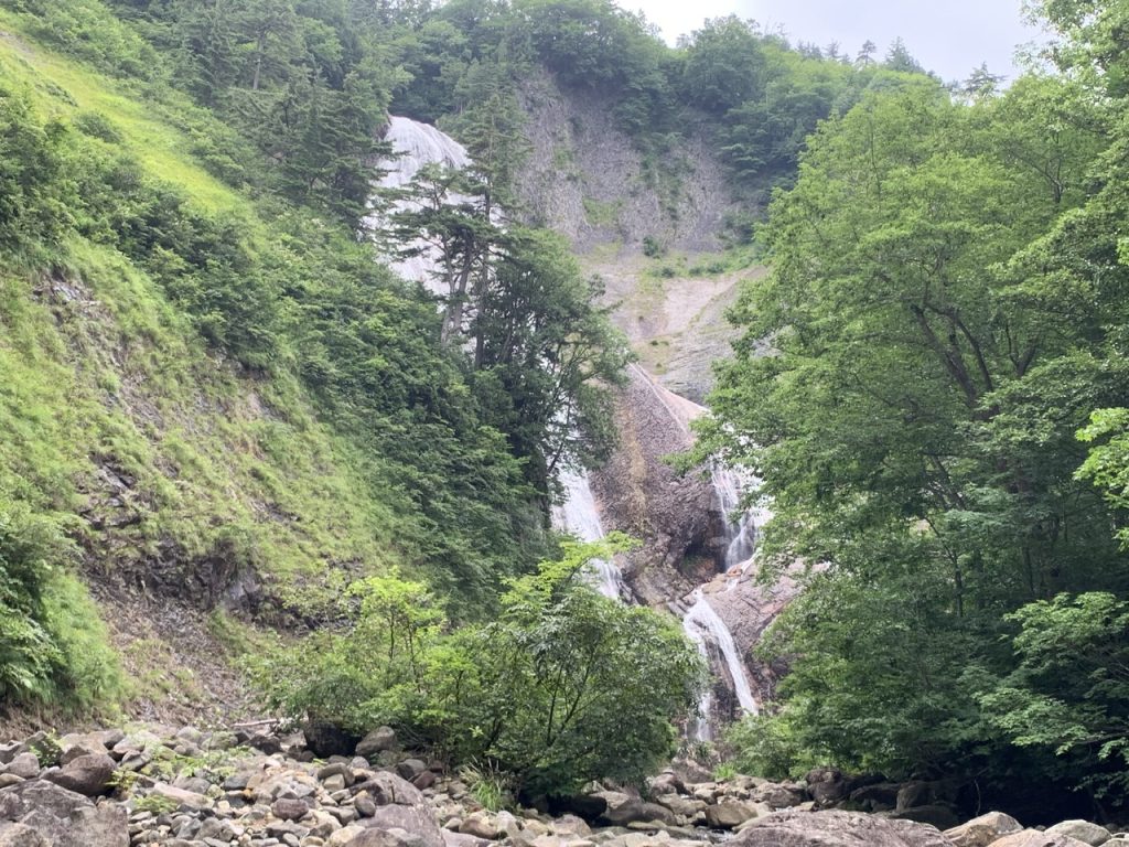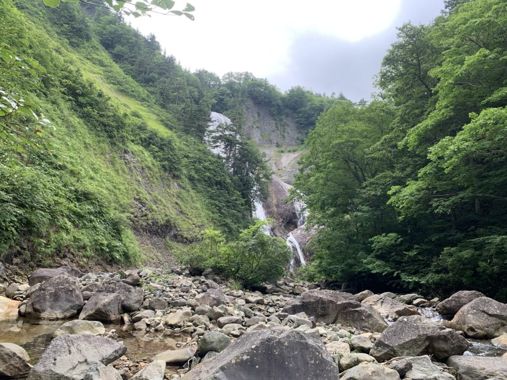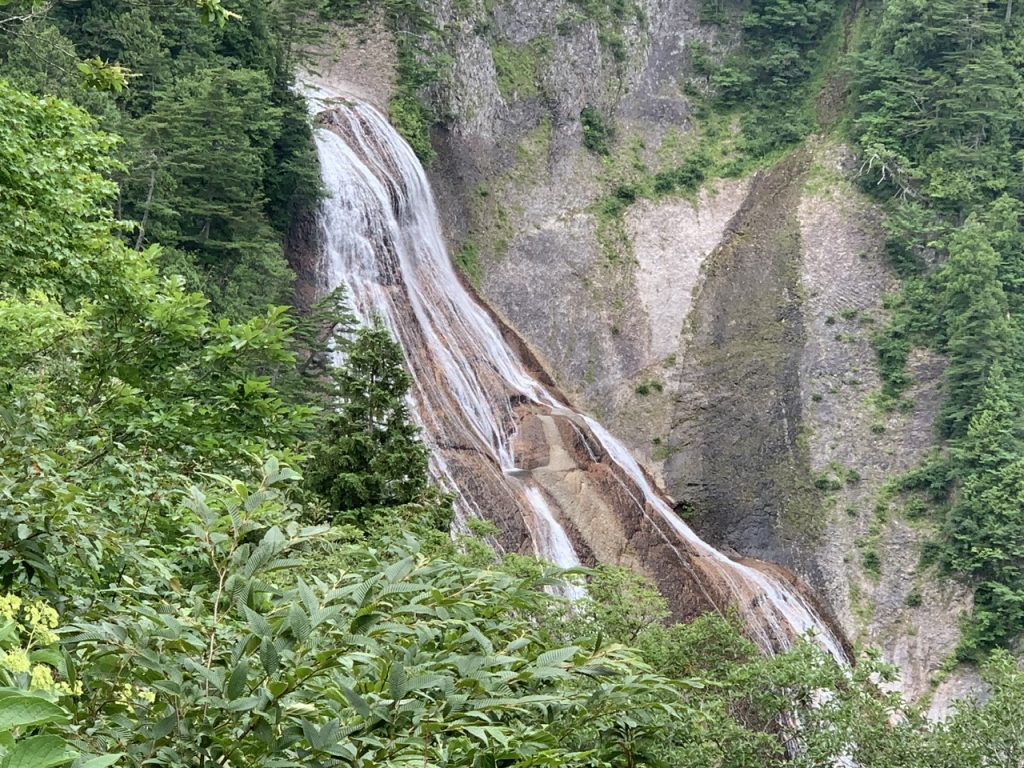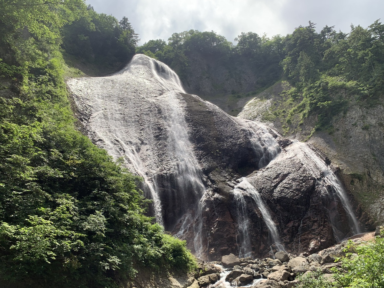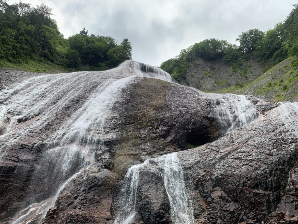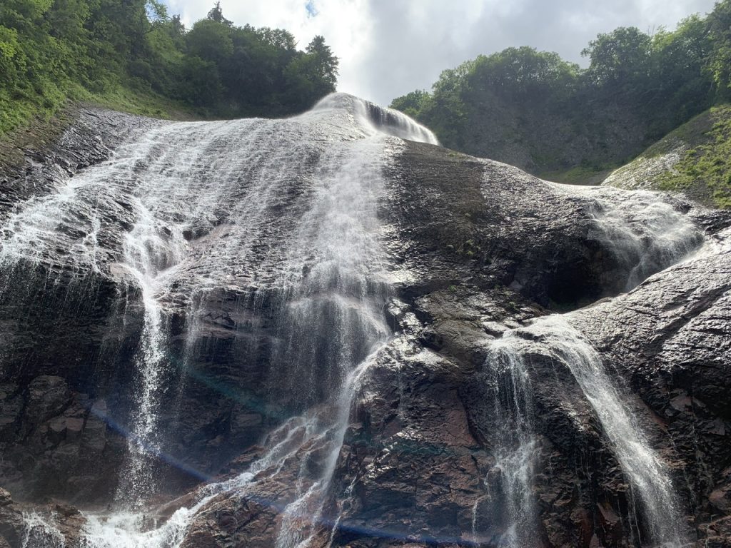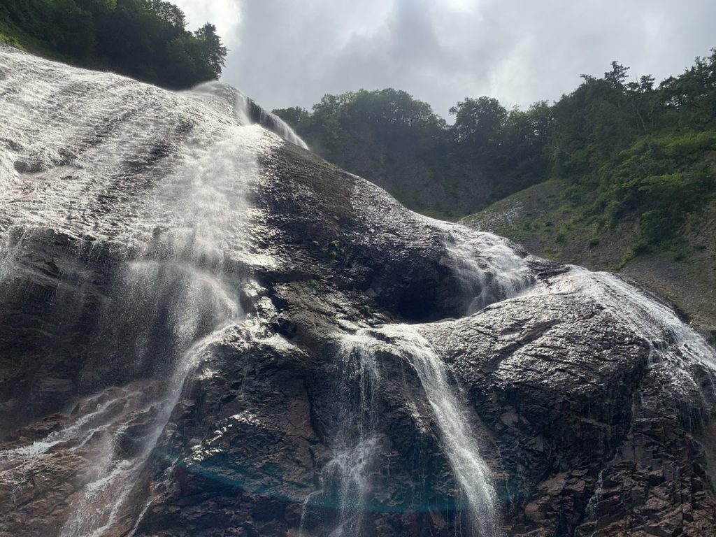 滝直下から見上げる滑川大滝はダイナミックで今までの苦労を吹き飛ばすほどの大迫力の滝に感動します。