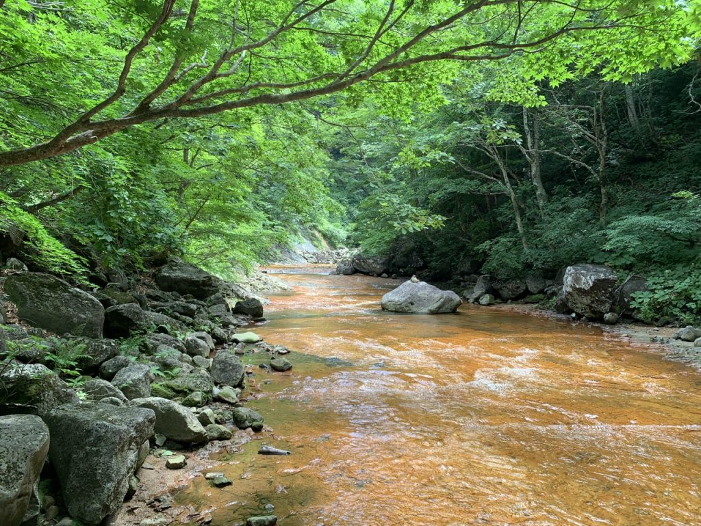 途中からは川の中を歩いて行かないと滝つぼまではいけませんので、水に濡れても平気な服装やマリンシューズなどの装備が必須です。