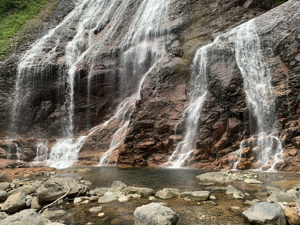 暑い日でしたので、滝に近寄ると飛沫がかかり、涼しくて気持ちがよかったです。