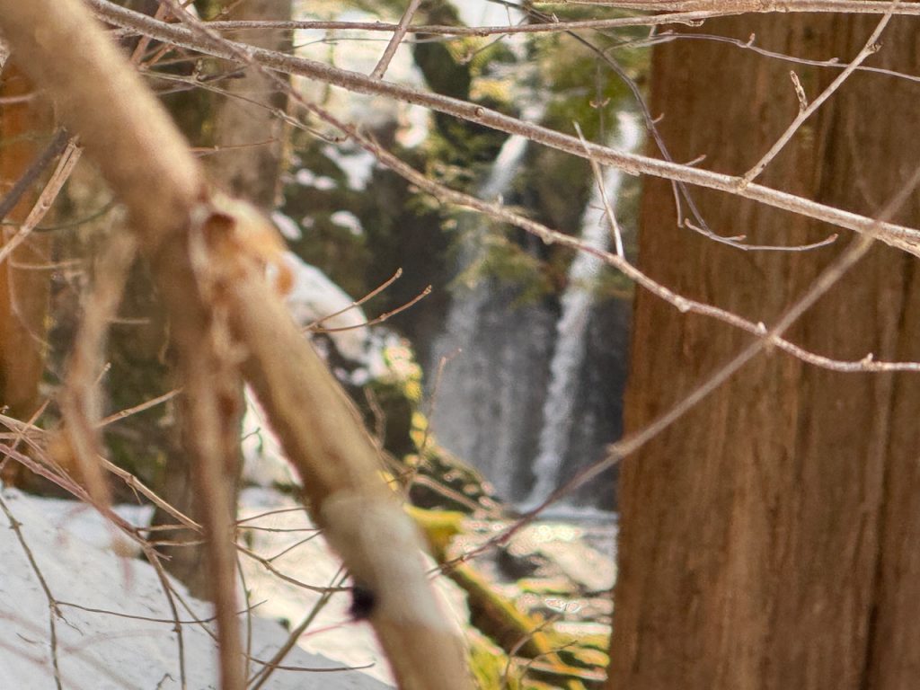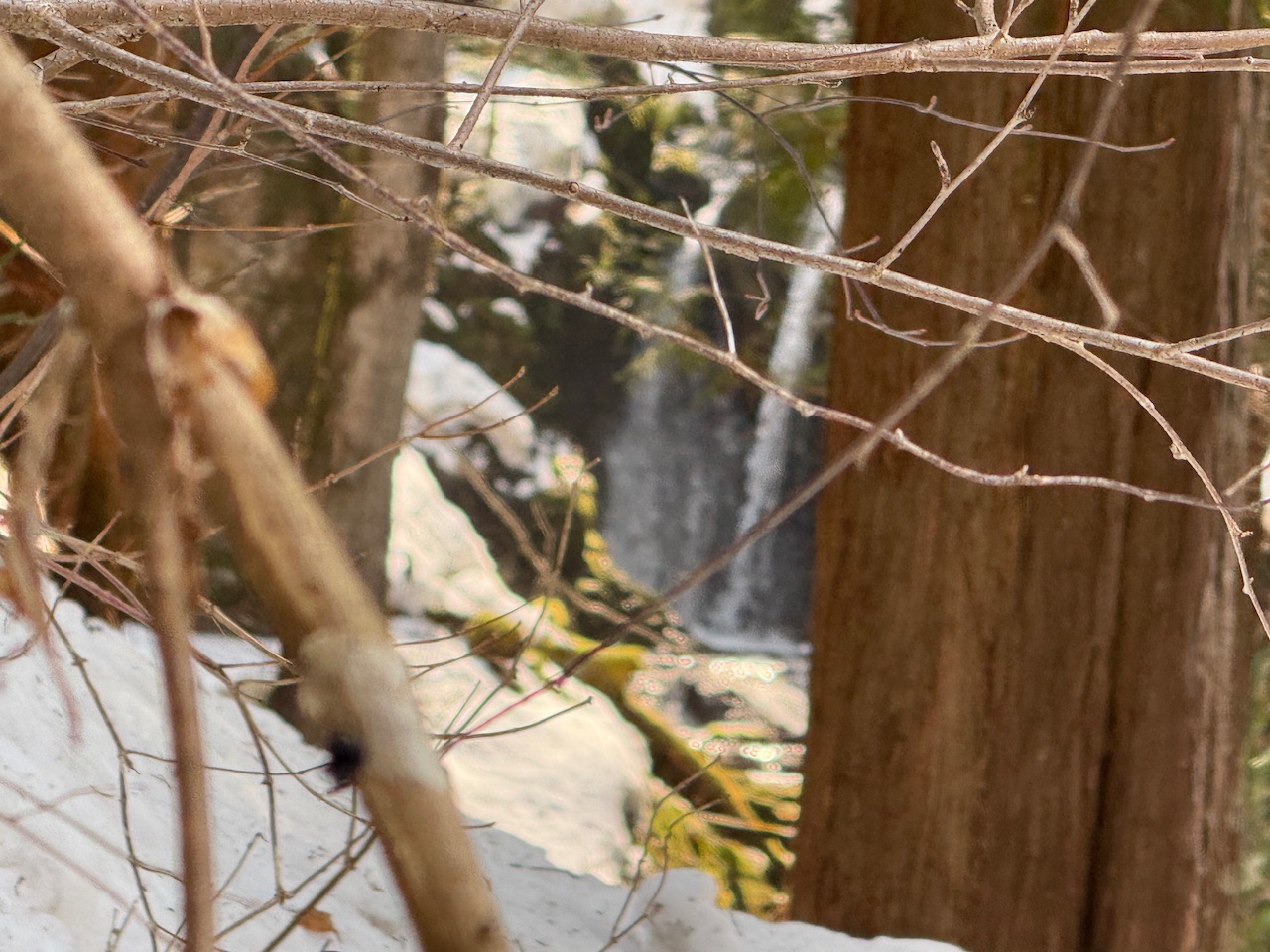 木々の隙間から滝が見えましたが、近づけなくて残念です。