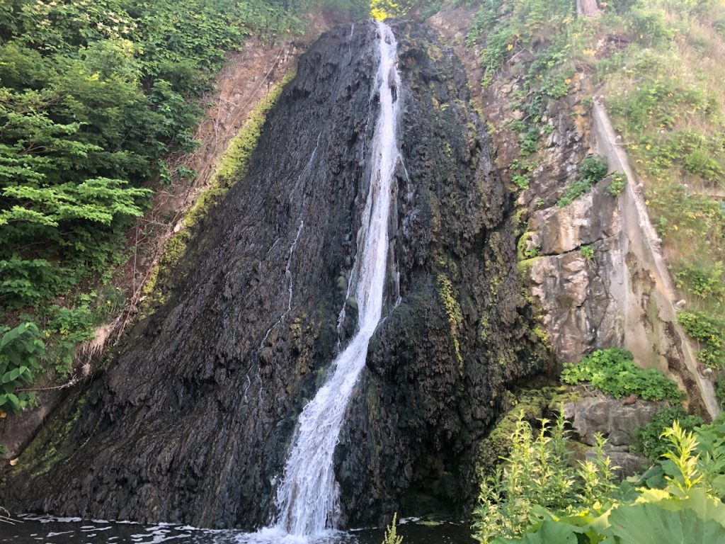 ウトロの繁華街、道の駅から知床半島に向かう国道334号沿いにある滝で落差8m、幅3mです。