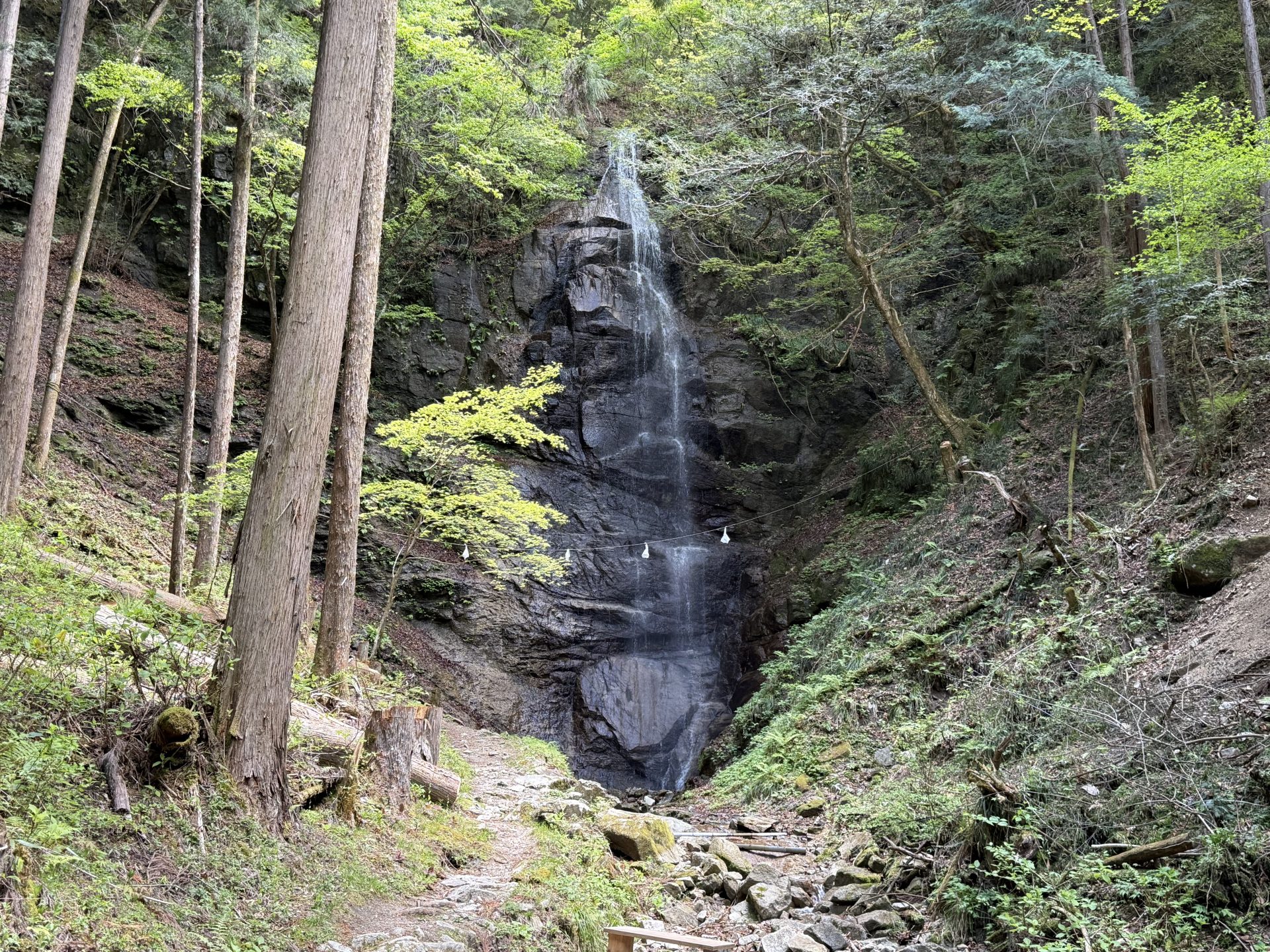 河川沿いを歩いていくと正面に滝が見えてきました。