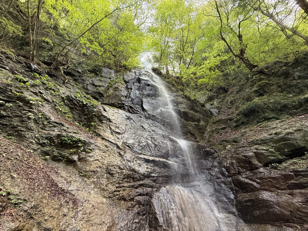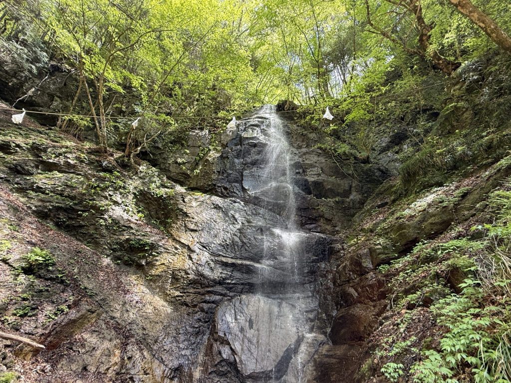 岩壁より流れ落ちる水がキラキラと輝いて流れ落ちる様が素敵な滝です。