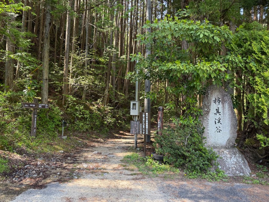 柿其渓谷渓谷入口の前には8台ほど車を停められる駐車場とトイレも設置されていました。