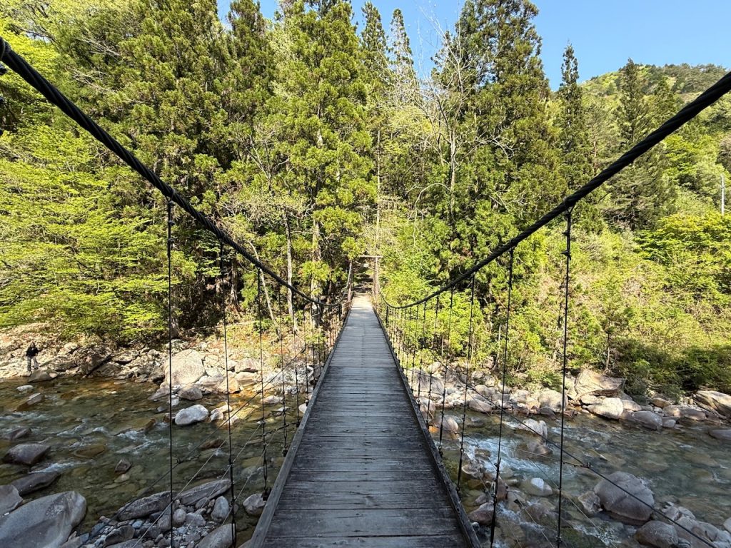両サイドはロープのみで歩くと結構揺れますのでなかなかスリリングな吊り橋です。