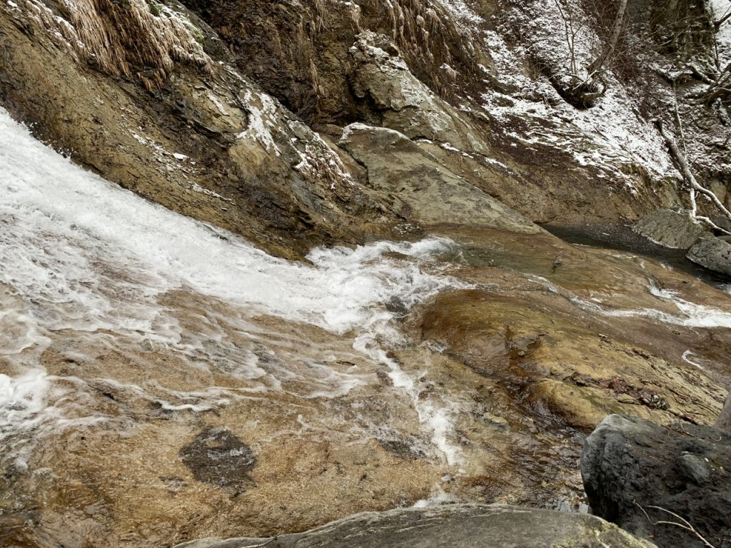 一枚岩の形状も趣があり、すべり落ちる水の流れが綺麗でした。