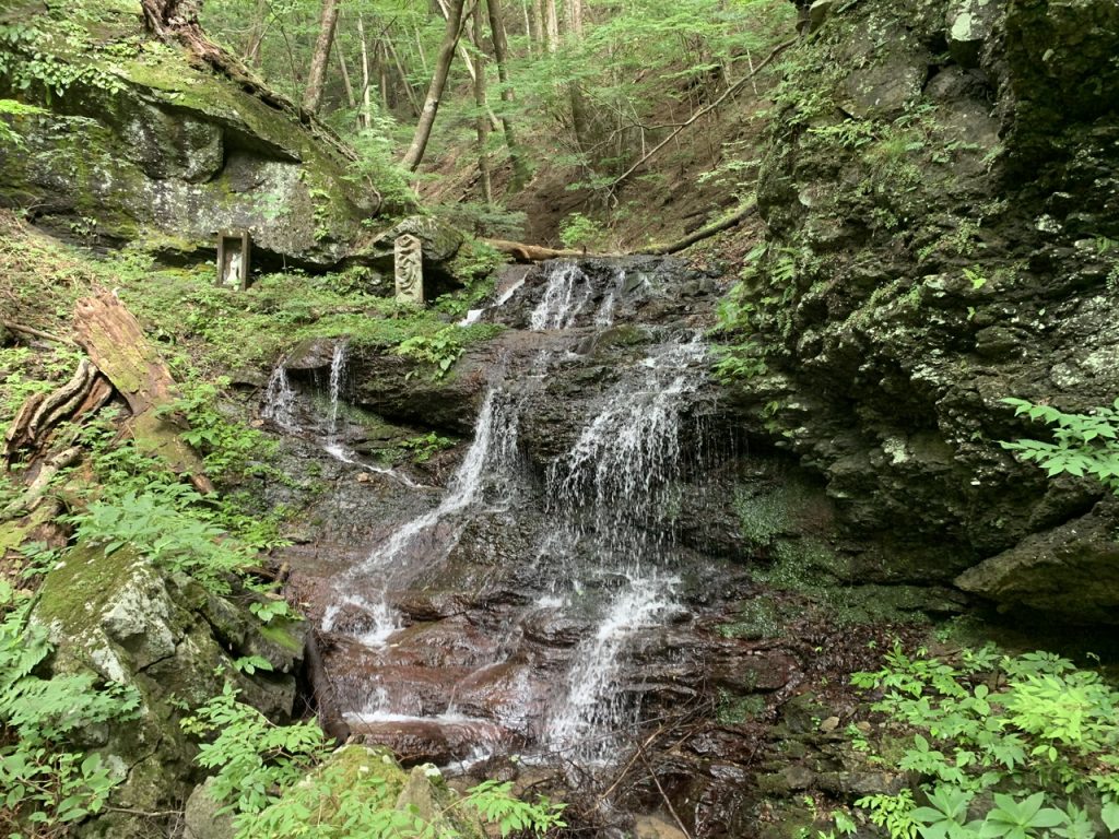 不動滝を更に30~40m先に進むと修行僧が流れ落ちる滝を幣束とし、水垢離や祈祷をした姿が浮かぶような滝があります。
